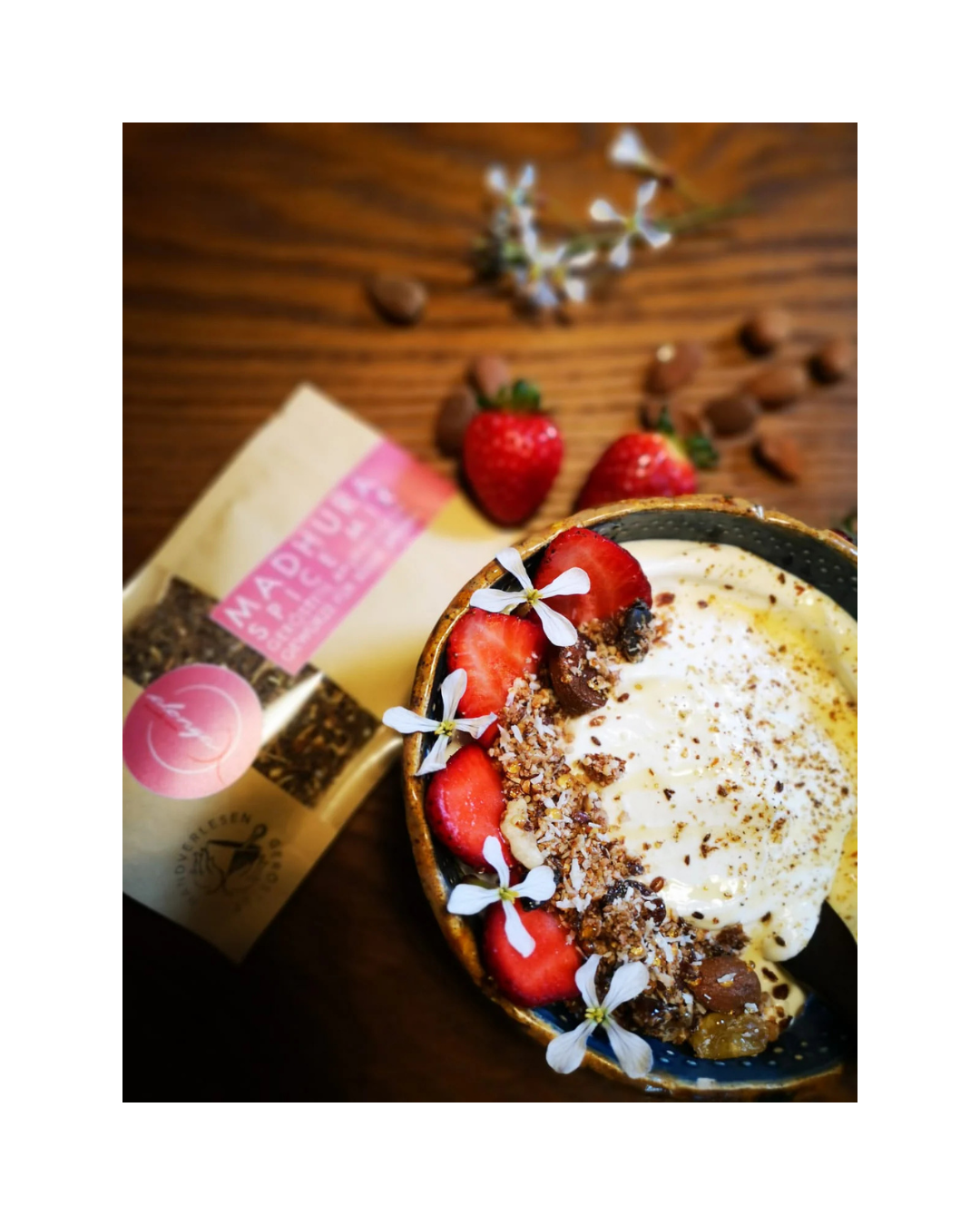 Die Madhura Gewürzmischung bringt süßen Gerichten, Müslis und Smoothies einen unverwechselbar exotischen Geschmack. Sorgfältig ausgewählte Bio-Gewürze werden schonend geröstet und grob gemahlen, um ihr volles Aroma zu entfalten.