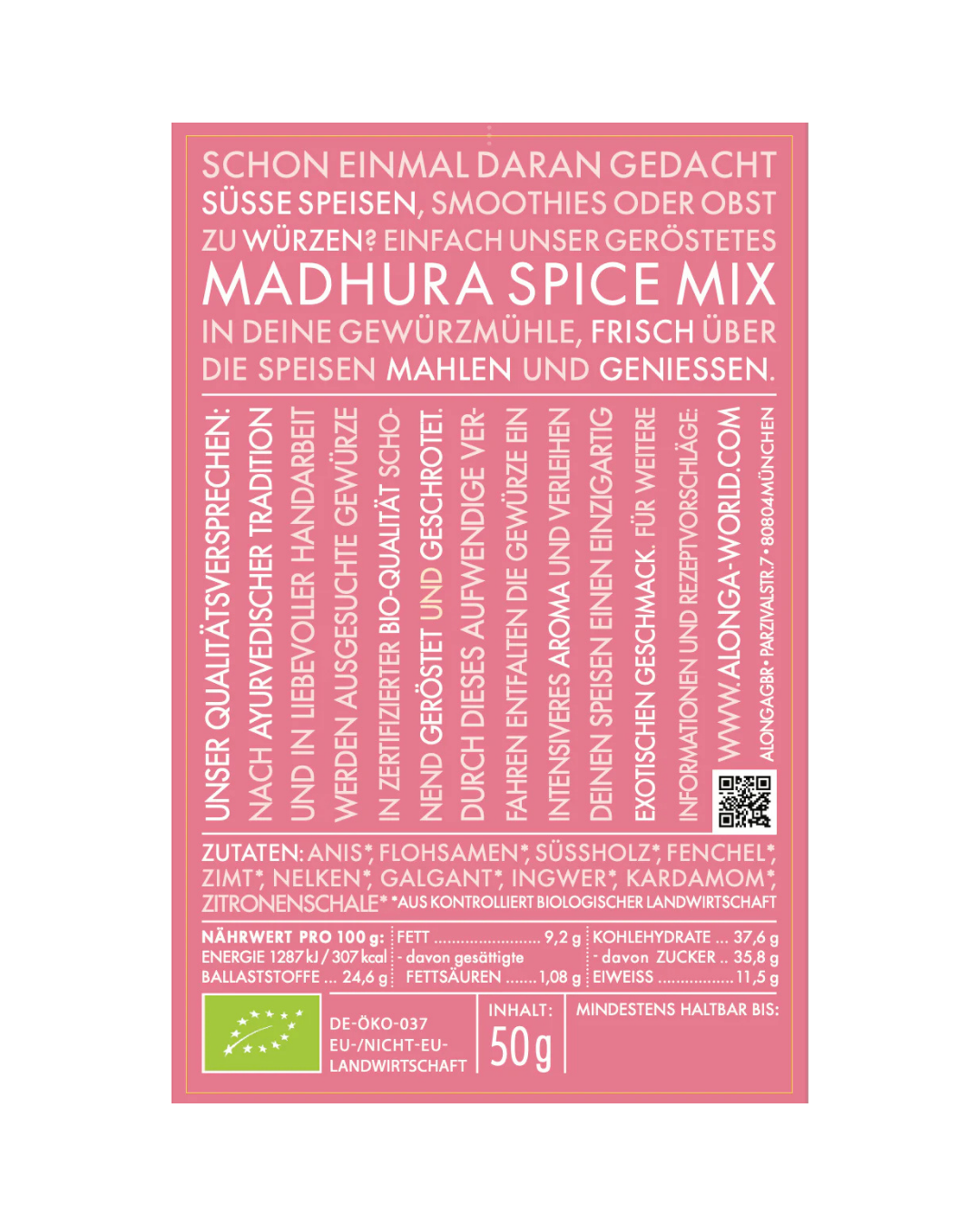 ALONGA World Bio Madhura Gewürzmischung für süße Speisen - Ayurveda Produktdetails