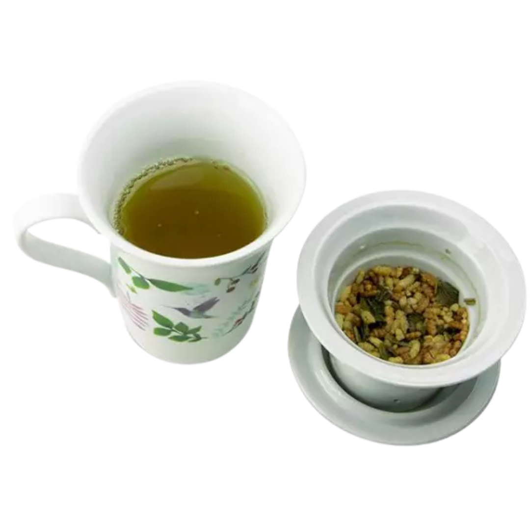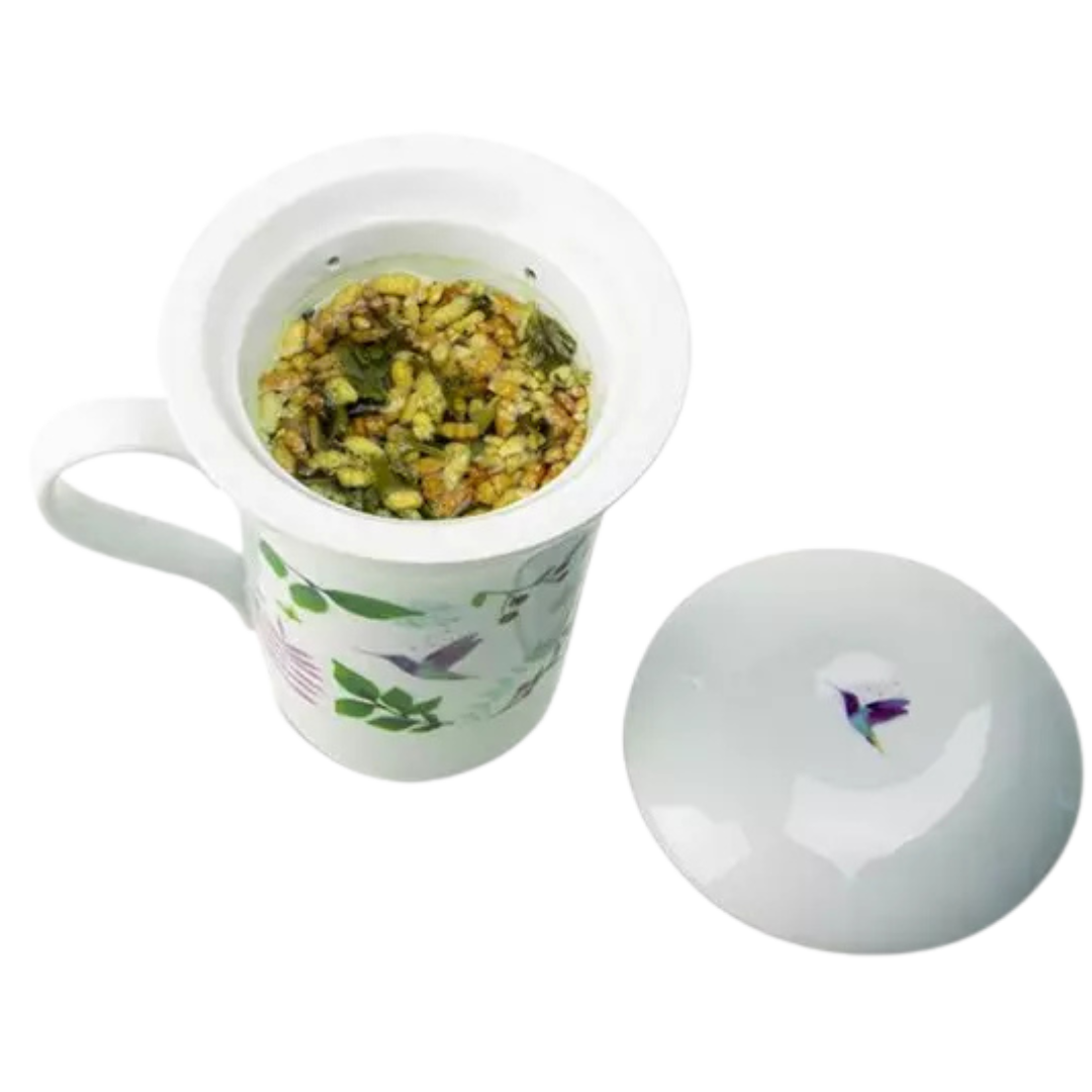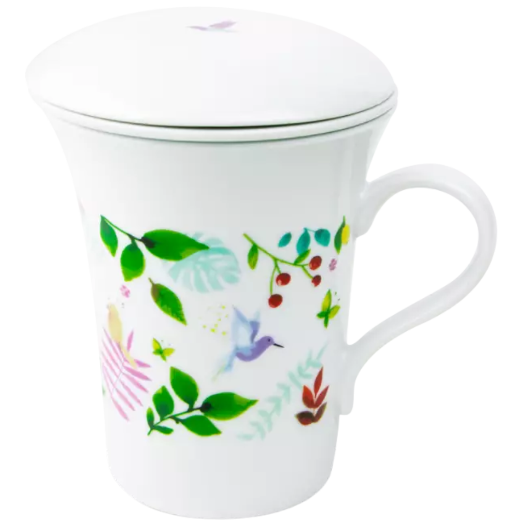 Teekanne mit Deckel, wodurch Ihr Getränk lange heißgehalten wird, und mit herausnehmbarem Filte, den Sie auf dem umgedrehten Deckel abstellen können. Praktisch für's Büro und für zu Hause. 0,25l. Künstlerisch gestaltetes weißes Porzellan mit Motiv Garten Eden. Ø 9,5 x H. 12 cm.