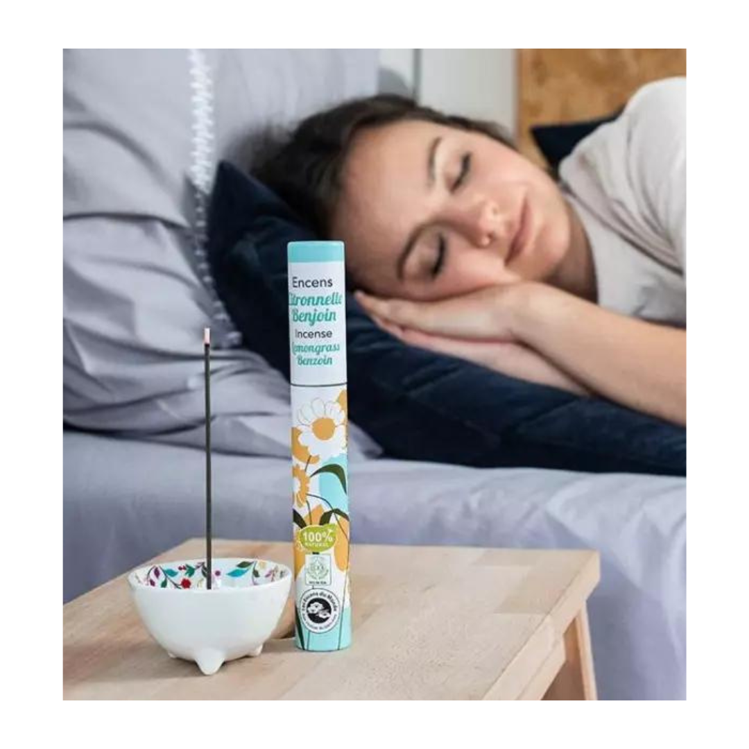Das Herbosense Räucherwerk stößt dank seiner besonderen Zusammensetzung nur sehr wenig VOC aus und ist dank seiner Mischungen aus Pflanzen mit wohltuenden Eigenschaften sowie dank seiner Herstellung aus ausschließlich natürlichen Inhaltsstoffen ein Produkt der nachhaltigen Entwicklung, 100% natürlich und 100% transparent für die Verbraucher. Gute Laune. Körper aus Zitronengras mit warmen Benzoe-Noten und sanft-bitteren Kamille-Noten. Dose mit 30 Stäbchen mit 30 min Brenndauer