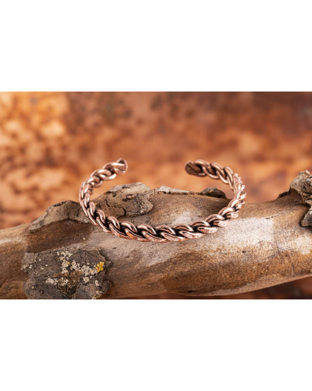 - Geflochtener Kupferarmreif (9 mm, offen). Handgefertigter, natürlicher Kupferschmuck mit traditioneller belebender Wirkung - verstellbar und zeitlos, ideal als Geschenk.