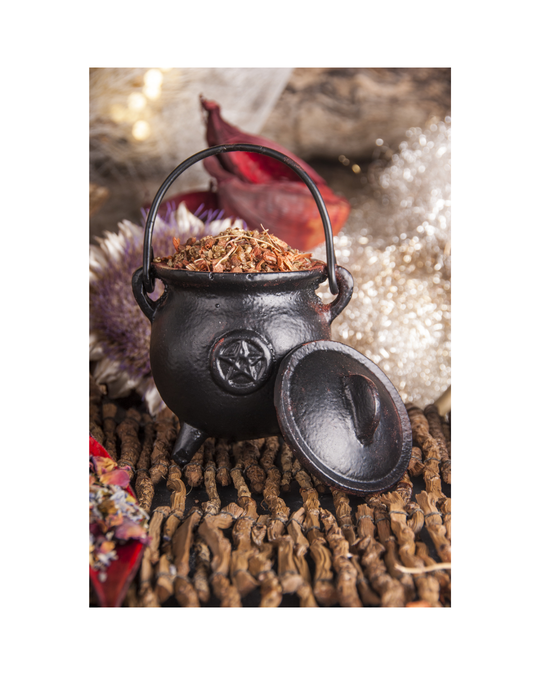 - Massiver Gusseisen-Hexenkessel mit Pentagramm für kraftvolles Räuchern. Henkelgriff, sandgedämpfte Hitze für sicheres Räuchern, verschließbar mit Deckel.