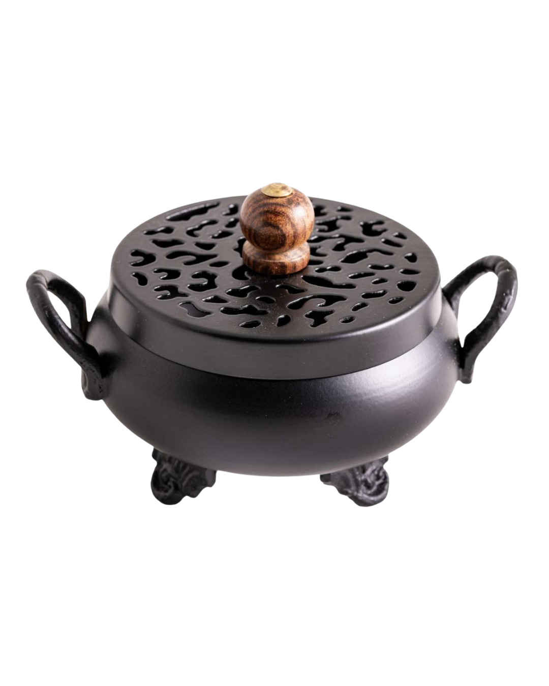 - Leila: Klassisches Räuchergefäß aus schwarz gepudertem Eisen mit Deckel und zwei Griffen. Für Räucherungen auf Sand geeignet. Kompakte Maße: H 10 cm, Ø 11 cm - elegant und robust.