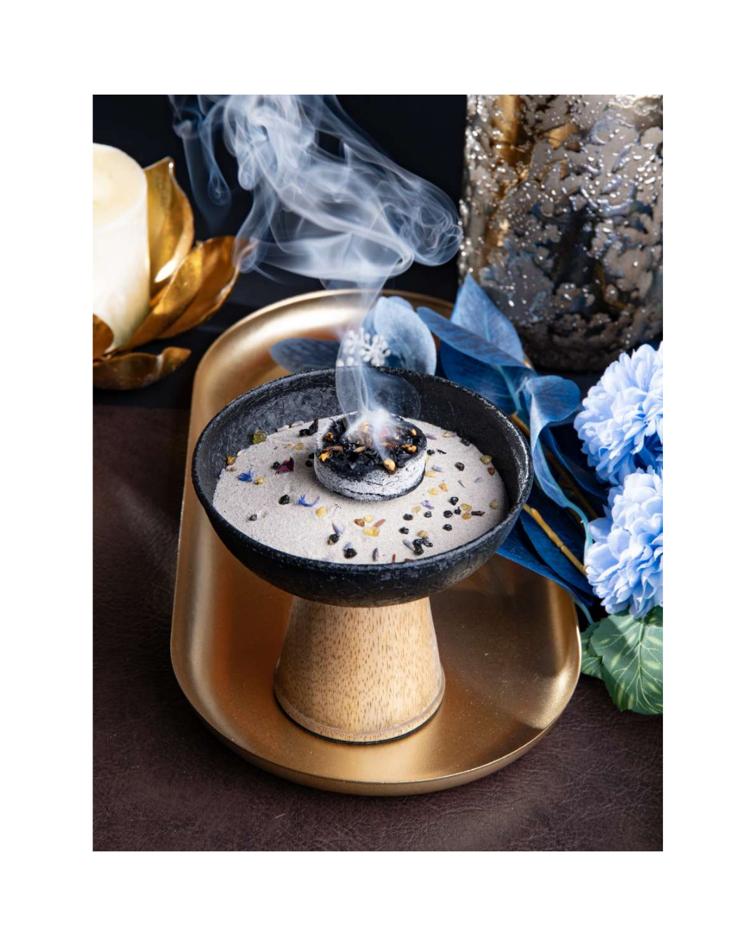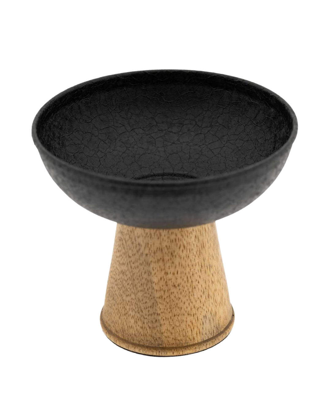 - Räucherkelch Elaia (groß) in schlichter Eleganz: pulverbeschichtetes Eisen mit Mangoholz-Fuß. Maße H 11 cm, Ø 12 cm. Perfekt für Räucherzeremonien und als Deko/Geschenk.