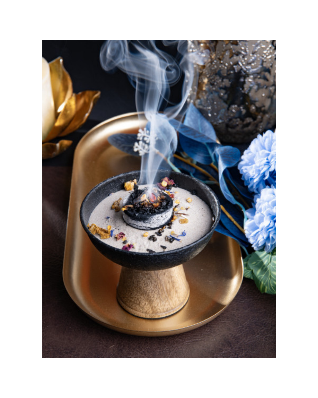 - Räucherkelch Elaia (mittel) - schlichte Eleganz aus pulverbeschichtetem Eisen mit Mangoholzfuß. Ideal für Räucherwerk, Deko & Geschenk. H 9,5 cm Ø 11,5 cm