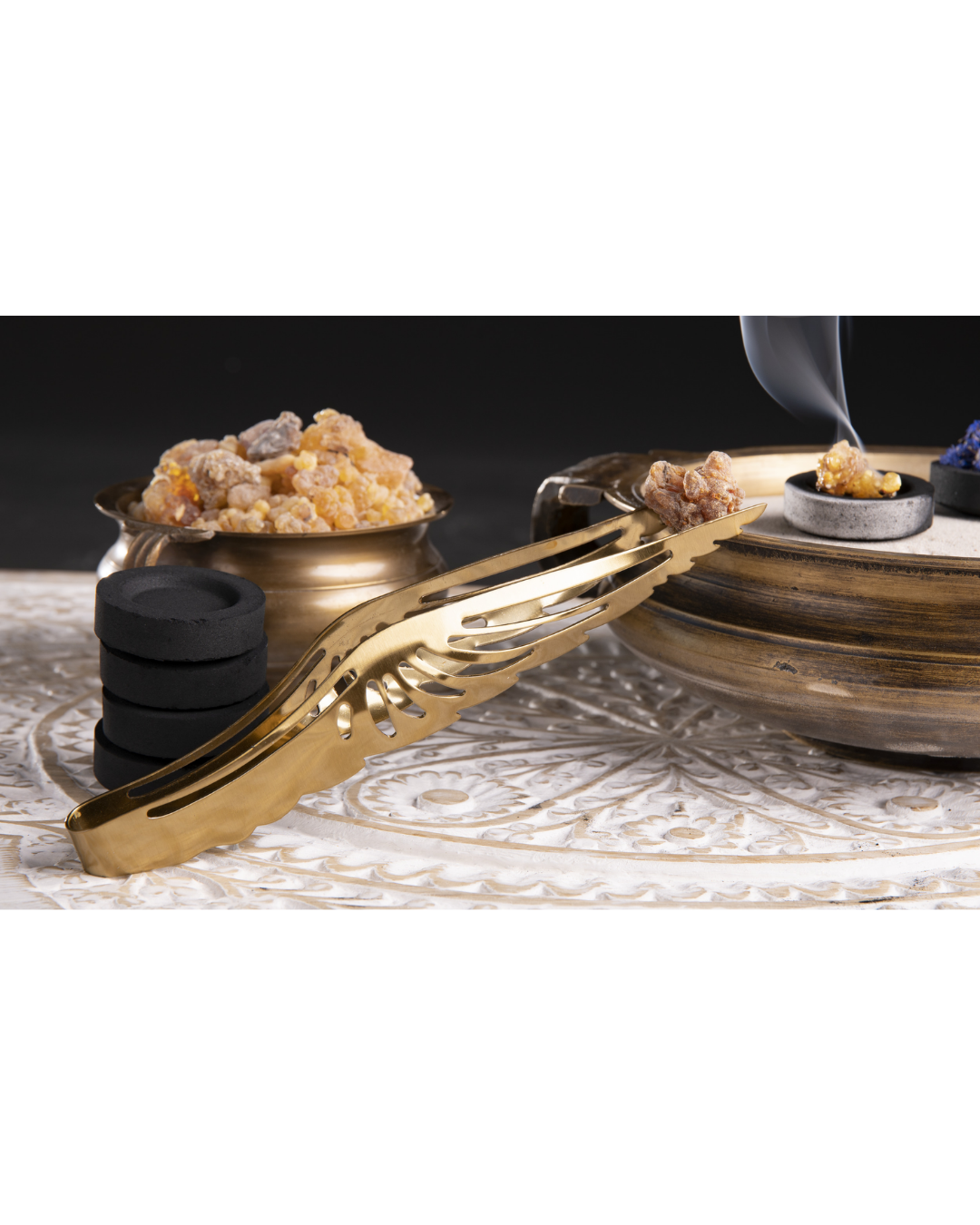 - Edle Räucherzange Engelsflügel in goldener Optik. Gestrahlter Edelstahl, Länge 23 cm. Schafft himmlische Stimmung bei Räucherritualen, Meditation und Zeremonien.