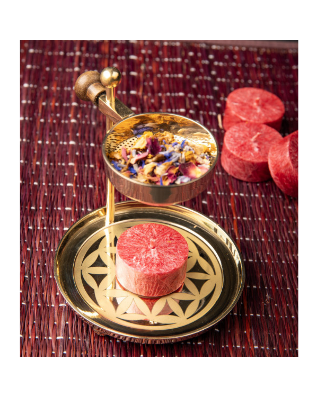 Manche Kräuter brauchen etwas mehr Abstand zum Teelicht als andere. Auch Harze reagieren je nach Härte unterschiedlich. Mit diesem Siebräuchergefäß kann man die Höhe je nach Bedarf variieren und gerne auch experimentieren.