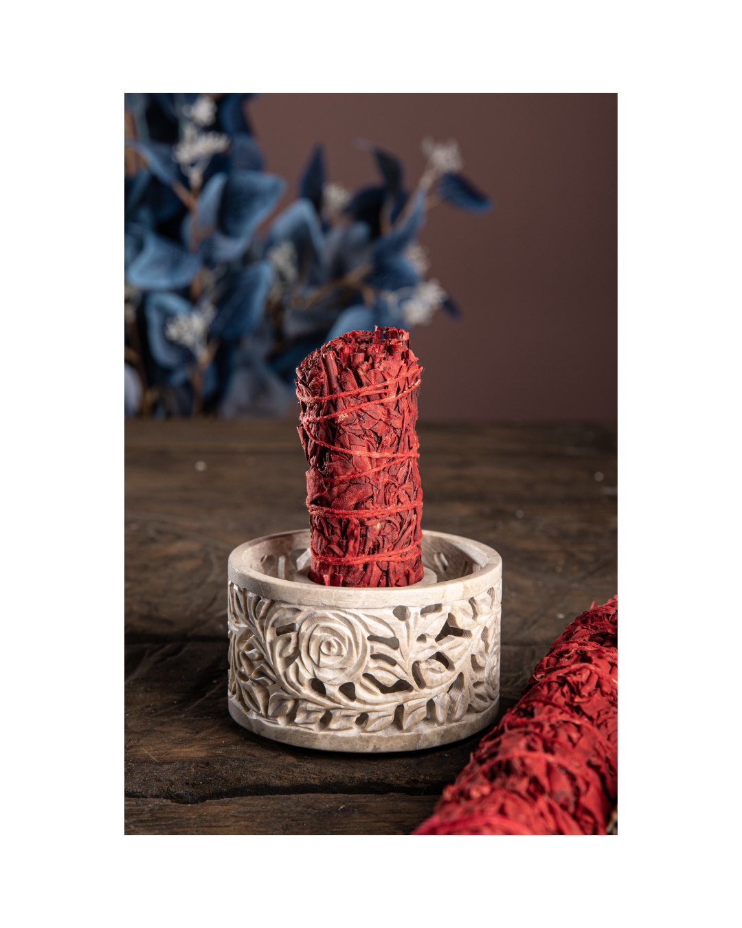 - Kleine Smudge Bowl "Yara" aus handgeschnitztem Speckstein mit traditioneller indischer Rosenranken-Schnitzkunst. Ideal zum Räuchern und für Reinigungsrituale. Maße: H 5 cm, Ø 9 cm.