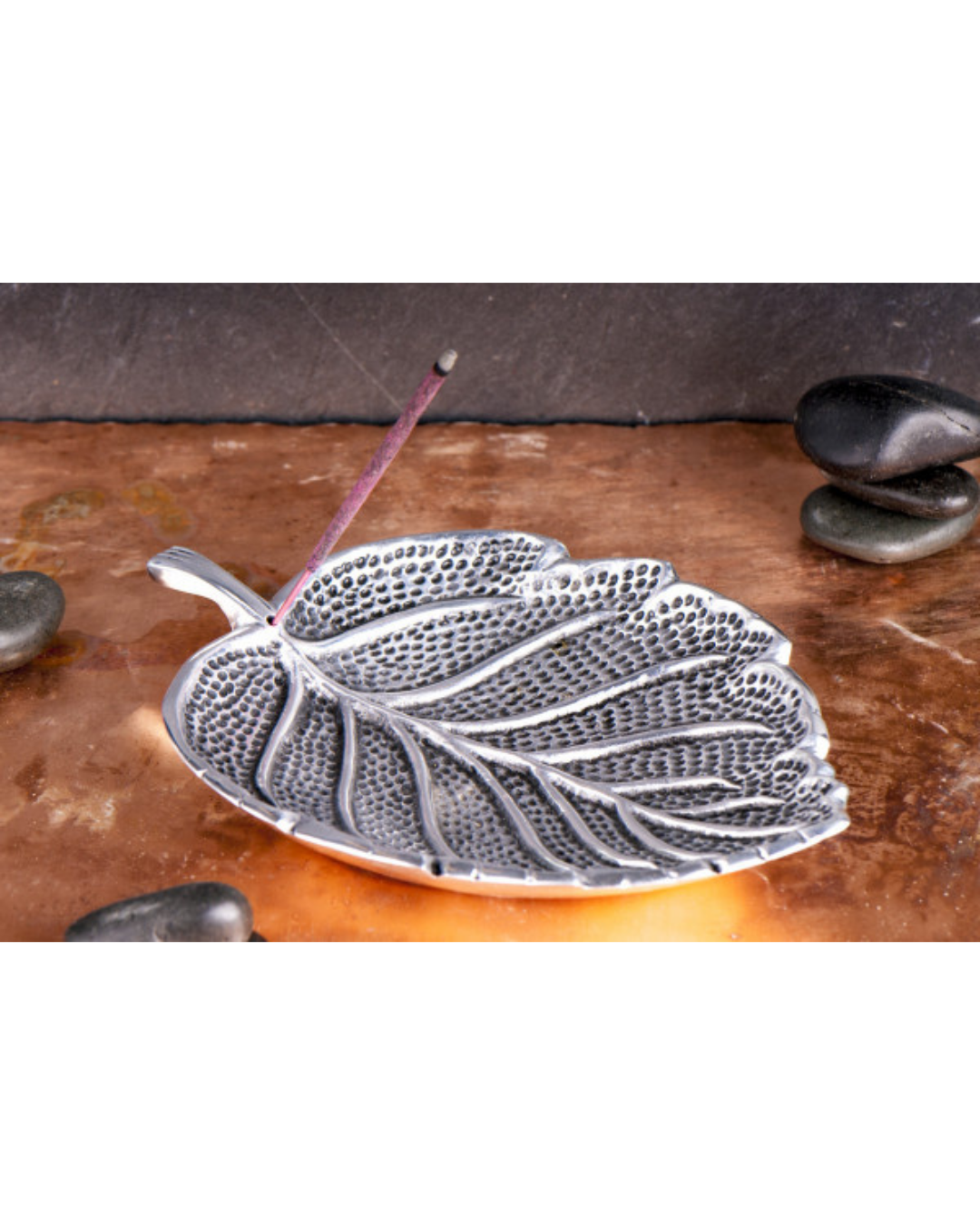 - Eleganter Räucherstäbchenhalter mit Blattrelief aus Weißmetall. Fängt Asche zuverlässig auf (13×18 cm) und ist leicht zu reinigen. Stilvolle Deko & Geschenk.
