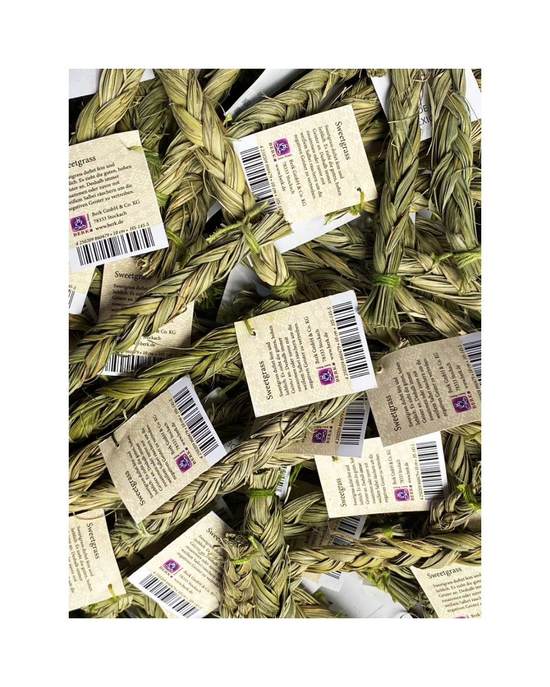 - Original Sweetgrass (10cm) - süßlich-lieblicher Duft, zieht positive Energien an. Vorher mit Salbei räuchern, um negative Energien zu vertreiben.