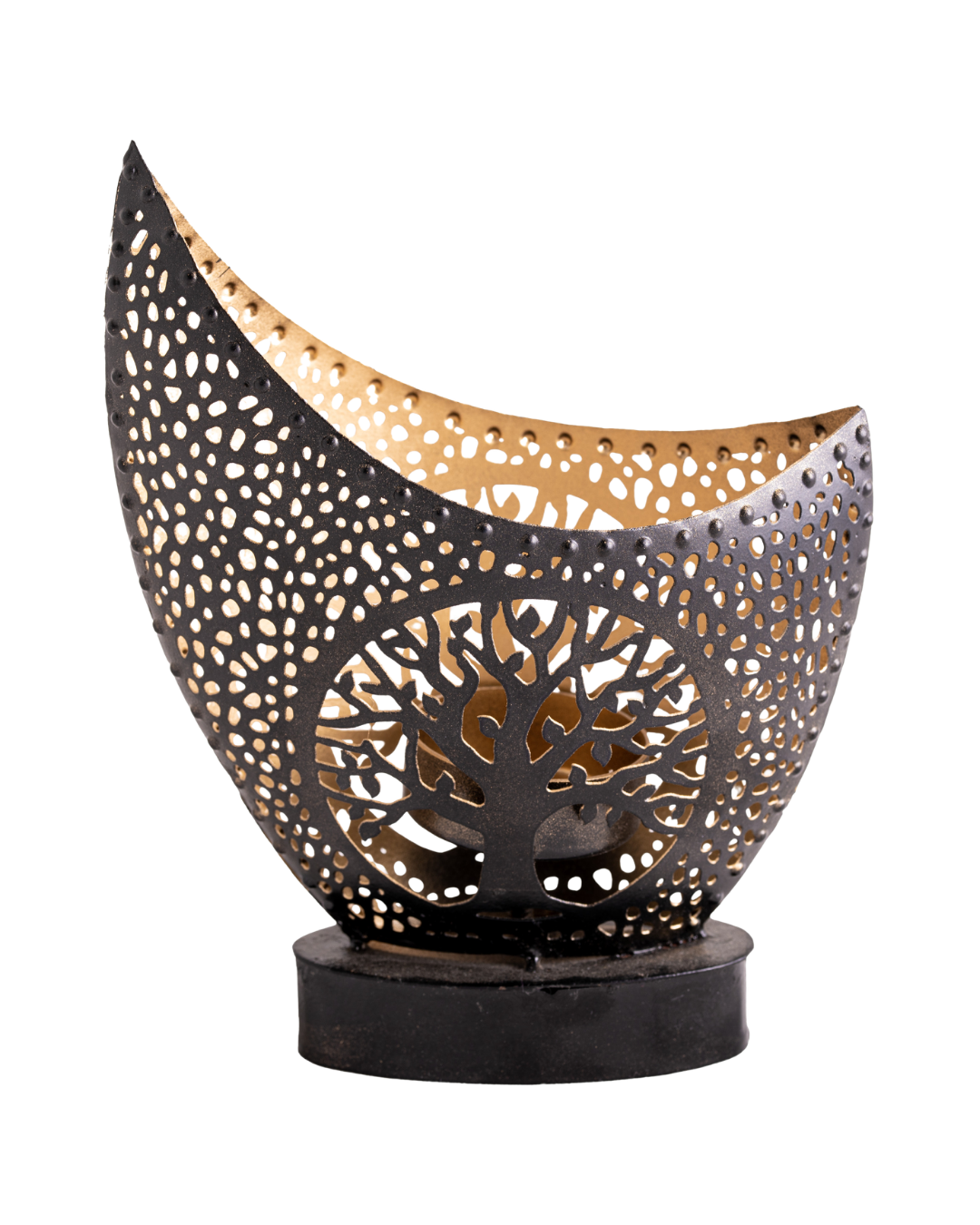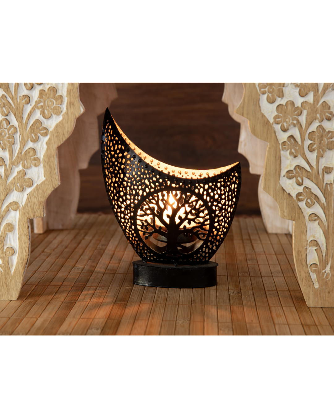 - Bezaubernder orientalischer Teelichthalter 'Weltenbaum' aus Eisen (H17×L13×B6 cm). Verwandelt Räume mit mystischem Licht?Schatten-Spiel in eine stimmungsvolle Oase.