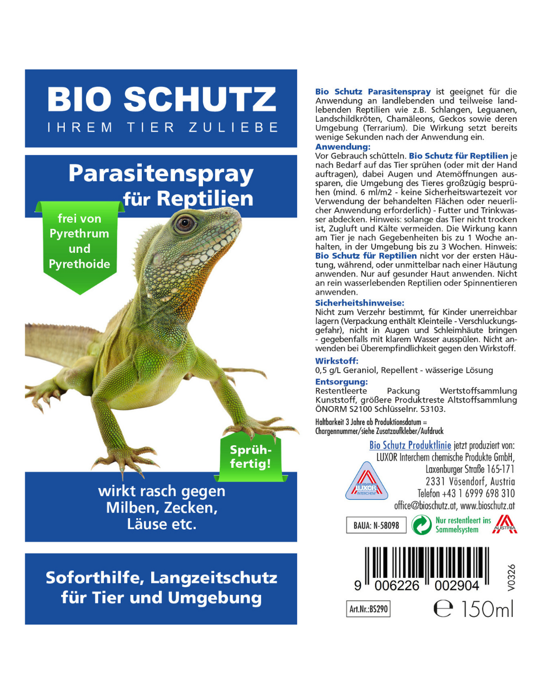 BIO SCHUTZ Parasitenspray für Reptilien Produktdetails