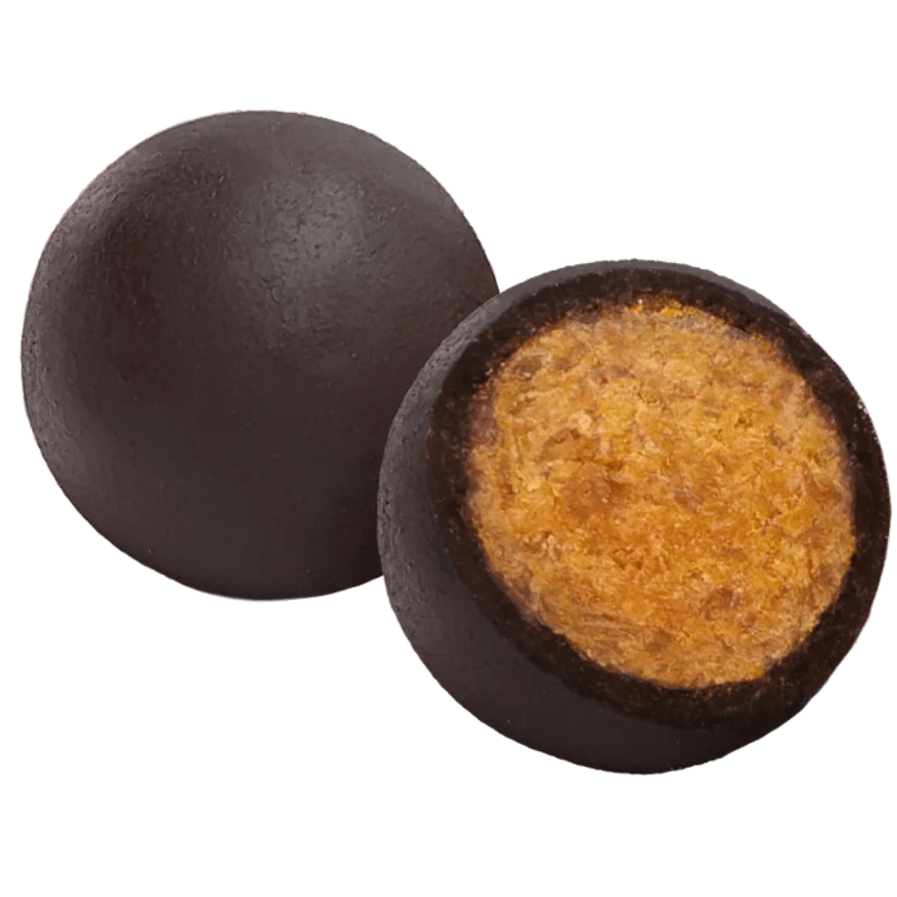 Mit 50 % Fruchtanteil und 50 % Schokolade bieten die Mango Fruit Balls eine ideale Balance aus süß und herb. Die fruchtige Süße der getrockneten Mango harmoniert perfekt mit der veganen Schokolade und macht diesen Snack zu einem besonderen Genussmoment.
