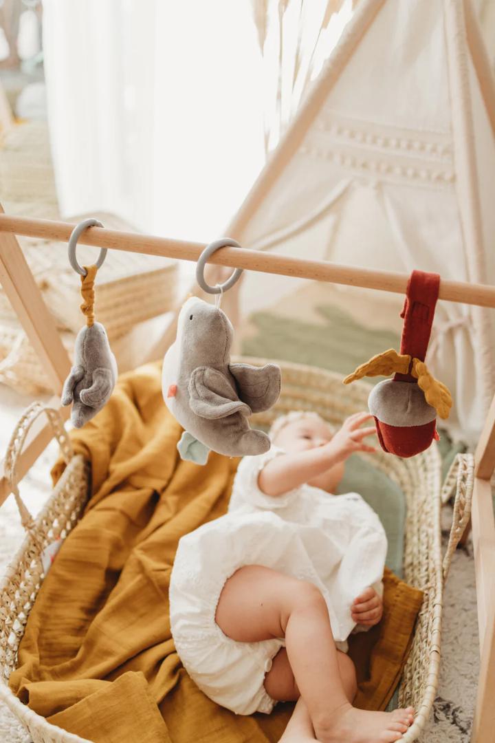Das Mini-Mobile lässt sich durch den praktischen Ring an verschiedenen Orten befestigen. Egal ob am Kinderwagen, Kindersitz, der Babyschale oder am Kinderbettchen – überall bereitet es Freude und fördert die sinnliche Wahrnehmung deines Babys. Das mobile Vögelchen sorgt mit seinen Pfeifgeräuschen für zusätzliche Unterhaltung und regt das Hörvermögen an.