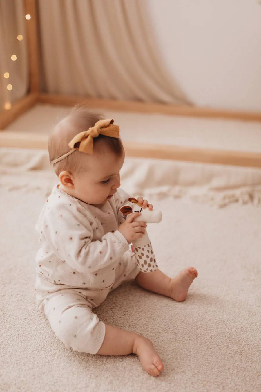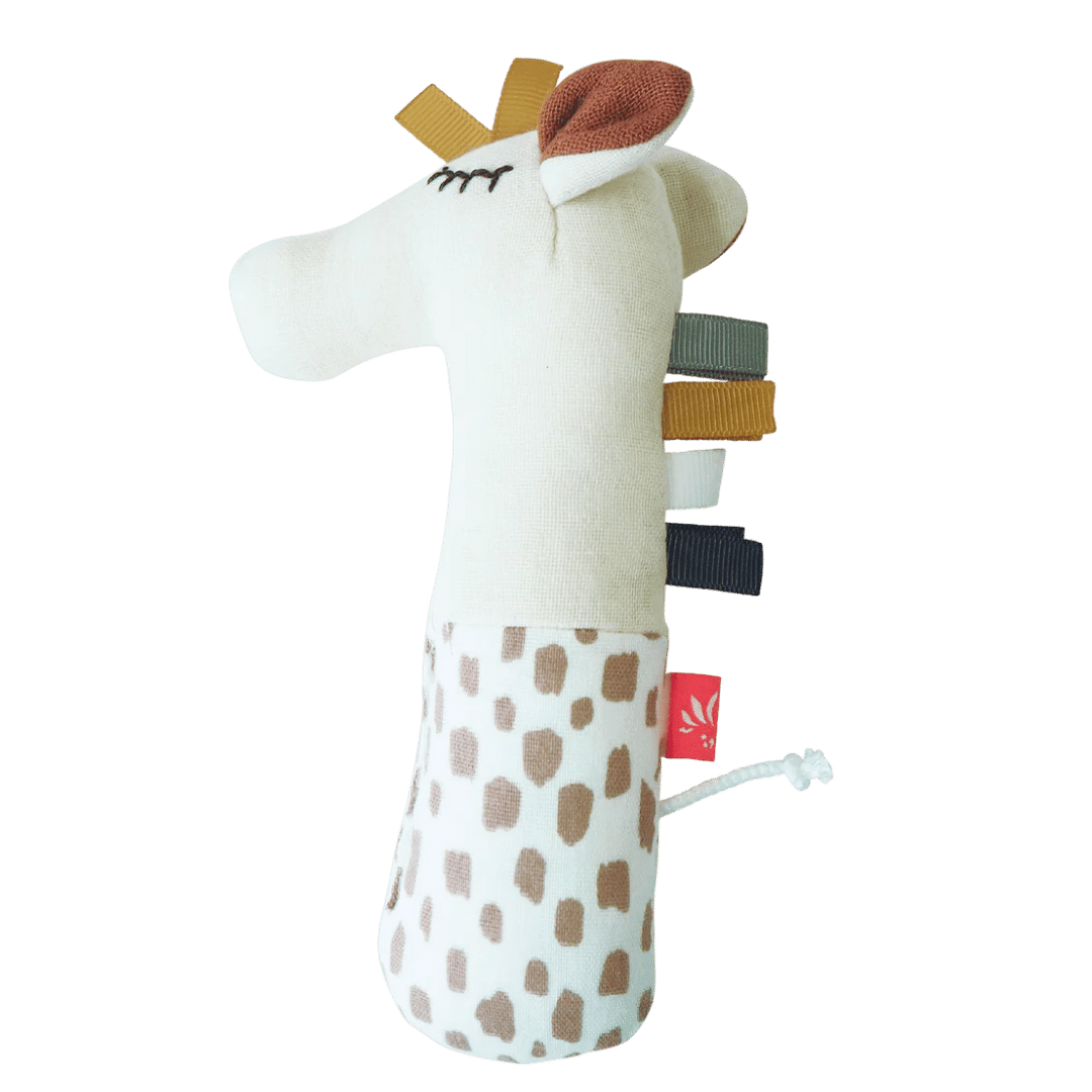 Die kleine Giraffe von Kikadu ist nicht nur ein niedliches Spielzeug, sondern auch ein spannender Begleiter, der Ihrem Baby Freude und Unterhaltung bringt. Mit ihrem süßen Giraffen-Design und integriertem Quietscher ist sie perfekt geeignet, um die haptische Wahrnehmung und die Sinne Ihres Kindes spielerisch zu fördern.