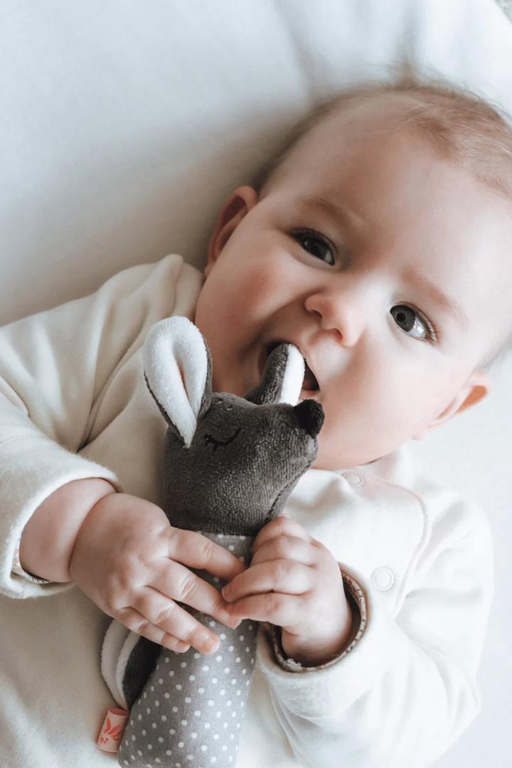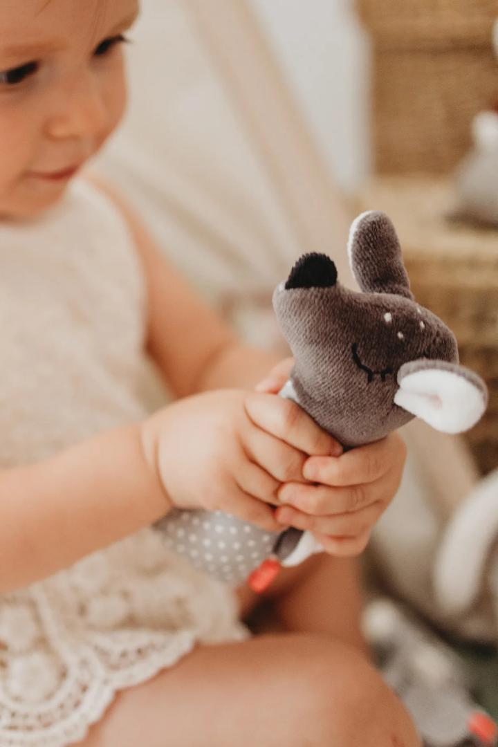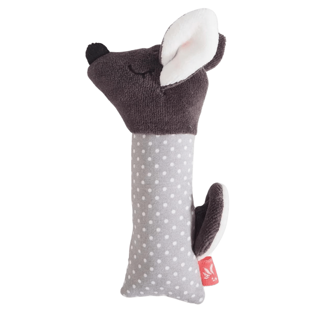 Dank seines geringen Gewichts und der schmalen Form ist der Quietscher Rehkitz ideal für kleine Hände. Dein Baby kann ihn leicht greifen und drücken, was die Hand-Augen-Koordination und die Feinmotorik stärkt.