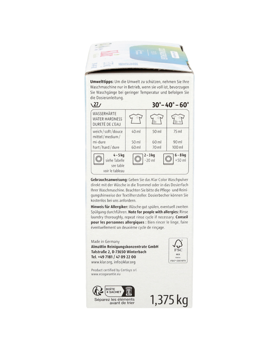 Klar Color Waschmitel Pulver Produktdetails
