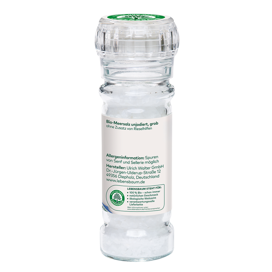 Das Lebensbaum grobes Meersalz aus Spanien aus der Salzmühle kommt aus Spanien.