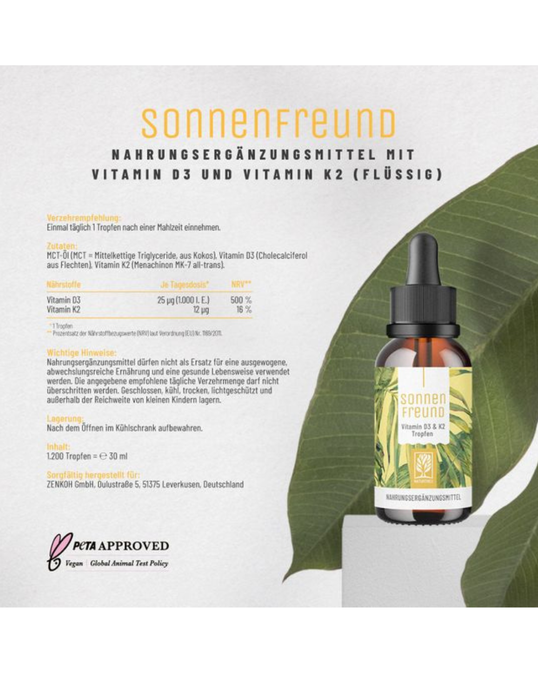 Naturtreu Sonnenfreund Vitamin D3 und K2 Tropfen, 30 ml Produktdetails