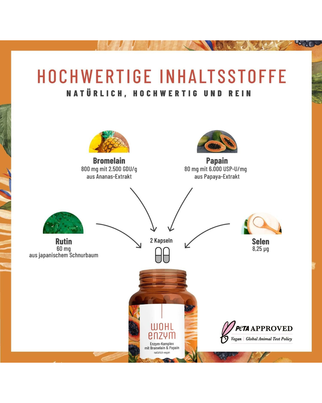 Kundenbewertungen für Wohlenzym Enzym-Komplex mit Bromelain und Papain, 120 Kapseln