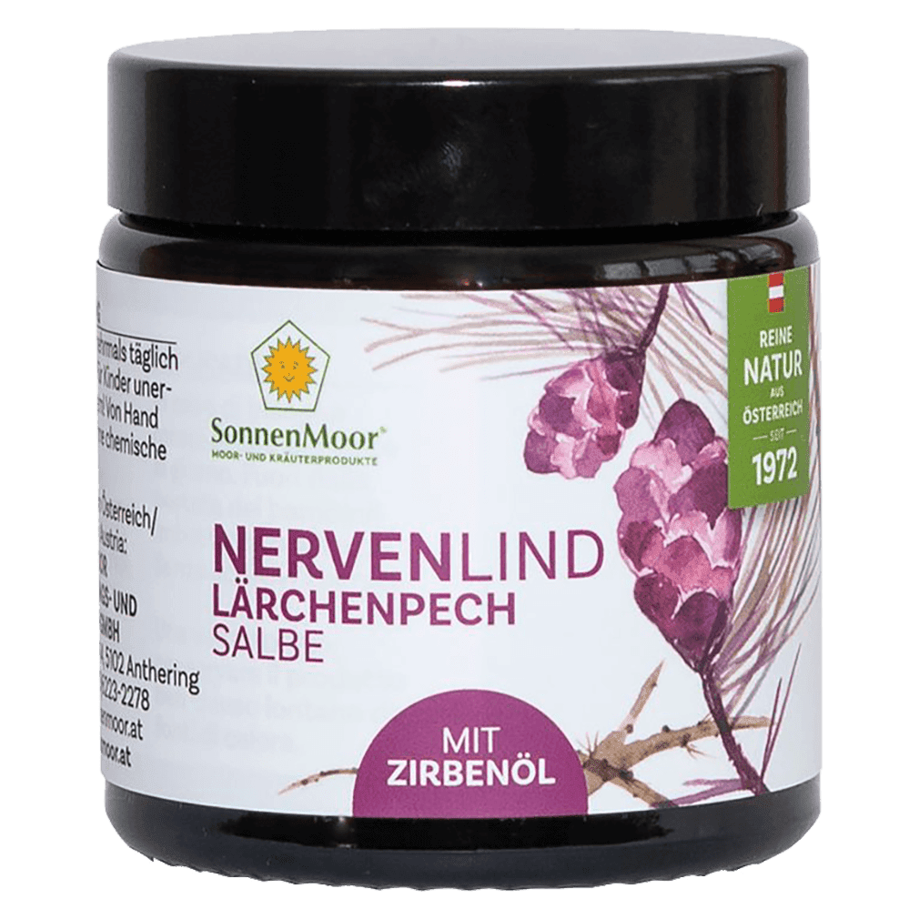 Die Nervenlind® Lärchenpechsalbe mit Zirbenöl wird nach einer besonders bewährten österreichischen Alpenrezeptur hergestellt und wirkt am besten als massierende Einreibung mit durchblutungsförderndem Effekt. Das Lärchenpech, genannt das Gold des Waldes, zählt seit Jahrhunderten zu einem der bedeutendsten Baumharze und wird traditionell im alpenländischen Raum als natürliches Hausmittel für die Gesichts- und Körpernerven benutzt. Das feine Öl der Zirbelkiefer betört mit seinem angenehm waldfrischen Duft.