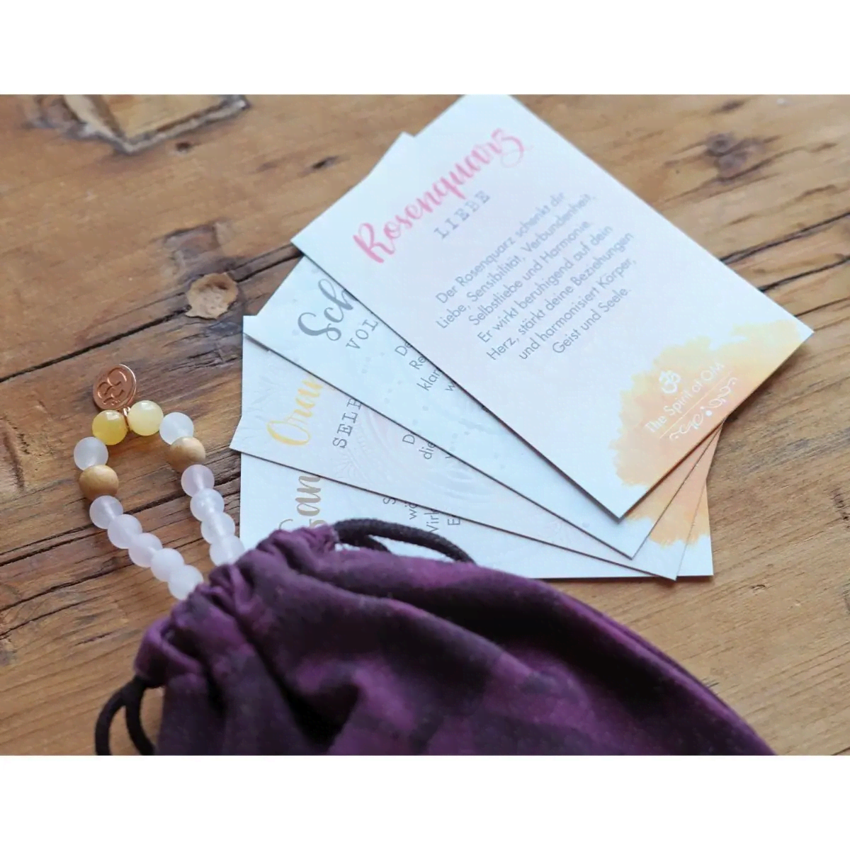 Jedes unserer Armbänder wird in einem kleinen Familienbetrieb in Bali mit großer Sorgfalt und Liebe zum Detail handgeknüpft. Verpackt in einem umweltfreundlichen Beutel aus Bio-Baumwolle, der aus den Reststoffen unserer Produktion gefertigt und mit mikrofeinem Rosenquarz oder Turmalin angereichert wird, spiegelt jedes Armband unser Engagement für Nachhaltigkeit und ethische Verantwortung wider. Mit jedem Rosenquarz Armband erhältst du nicht nur ein wunderschönes Schmuckstück, sondern auch Mandala-Kärtchen, die die Bedeutung der verwendeten Steine und ihre Wirkung auf dich erklären. Lass das Rosenquarz Armband ein Zeichen deiner Liebe und deines Engagements für persönliches Wachstum und Harmonie sein – ein täglicher Begleiter, der dich an die Kraft der Liebe erinnert.