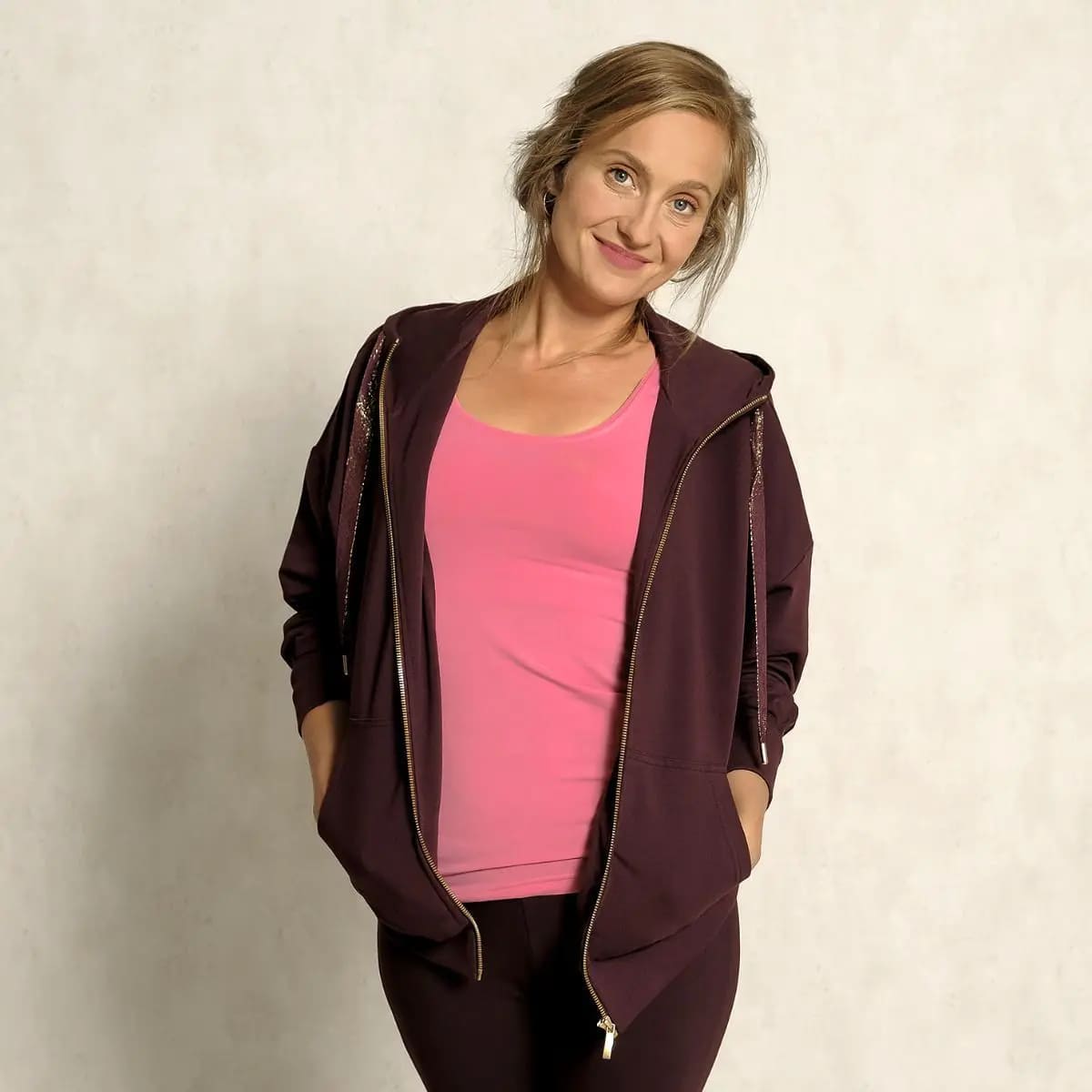Kapuzenjacke weit aubergine