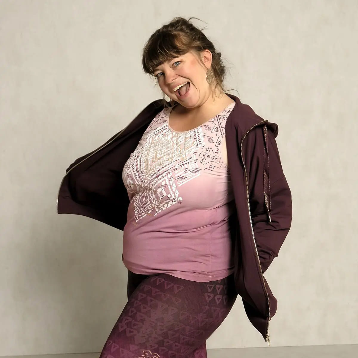 Spirit of Om Kapuzenjacke weit aubergine