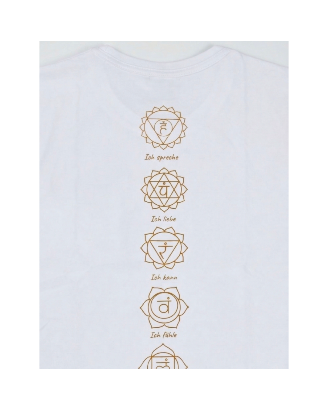 Der verlängerte Body und der Comfort Fit sorgen für eine entspannte Passform, die sich deinem Alltag mühelos anpasst. Der Stoff fällt weich und bleibt dabei formstabil. Ein feiner Goldprint mit OM-Schriftzug auf dem Rücken setzt einen stilvollen Akzent, während die innenliegenden Chakra-Symbole als dezentes Detail nah am Körper getragen werden und dem Shirt eine besondere Tiefe verleihen.