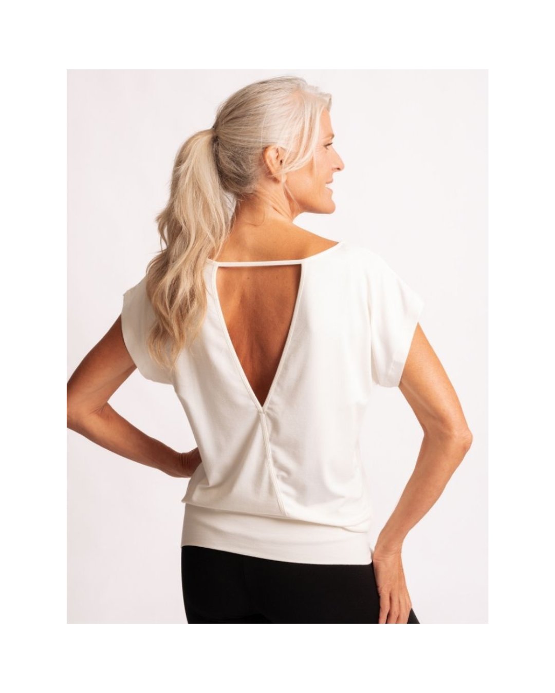 Der Name „Jangama“ stammt aus dem Sanskrit und bedeutet „beweglich“ oder „lebendig“. Passend dazu steht das Shirt für Freiheit, Flexibilität und einen bewussten Lebensstil. Der feminine Rückenausschnitt mit V-Neck verleiht dem Design eine moderne Note, während der dezente Golddruck mit OM-Symbol auf der Hüfte die spirituelle Inspiration des Modells unterstreicht.