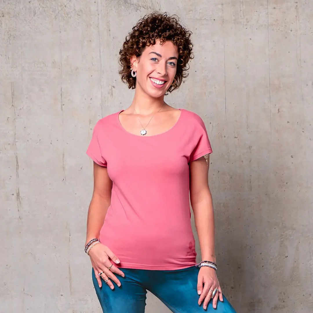 Entdecke unser Yogashirt in zartem Peach von Spirit of OM, das ultimativen Komfort und Harmonie bietet. Dieses Shirt unterstützt perfekt die Balance zwischen Körper, Geist und Seele und ist ideal für Yoga und tägliche Aktivitäten. Hochwertige Materialien für Komfort und Energie Das Yogashirt besteht aus einer Mischung aus 60% Viskose (aus Bambus-Zellstoff), 35% Baumwolle und 5% Elastan. Diese Materialien sorgen für eine weiche, atmungsaktive Textur, die angenehm auf der Haut liegt. Zudem ist das Shirt mit mikrofeinem Rosenquarz angereichert, der bekannt ist für seine Fähigkeit, die Herzöffnung und das allgemeine Wohlbefinden zu fördern. Spirituelle Akzente und funktionalität