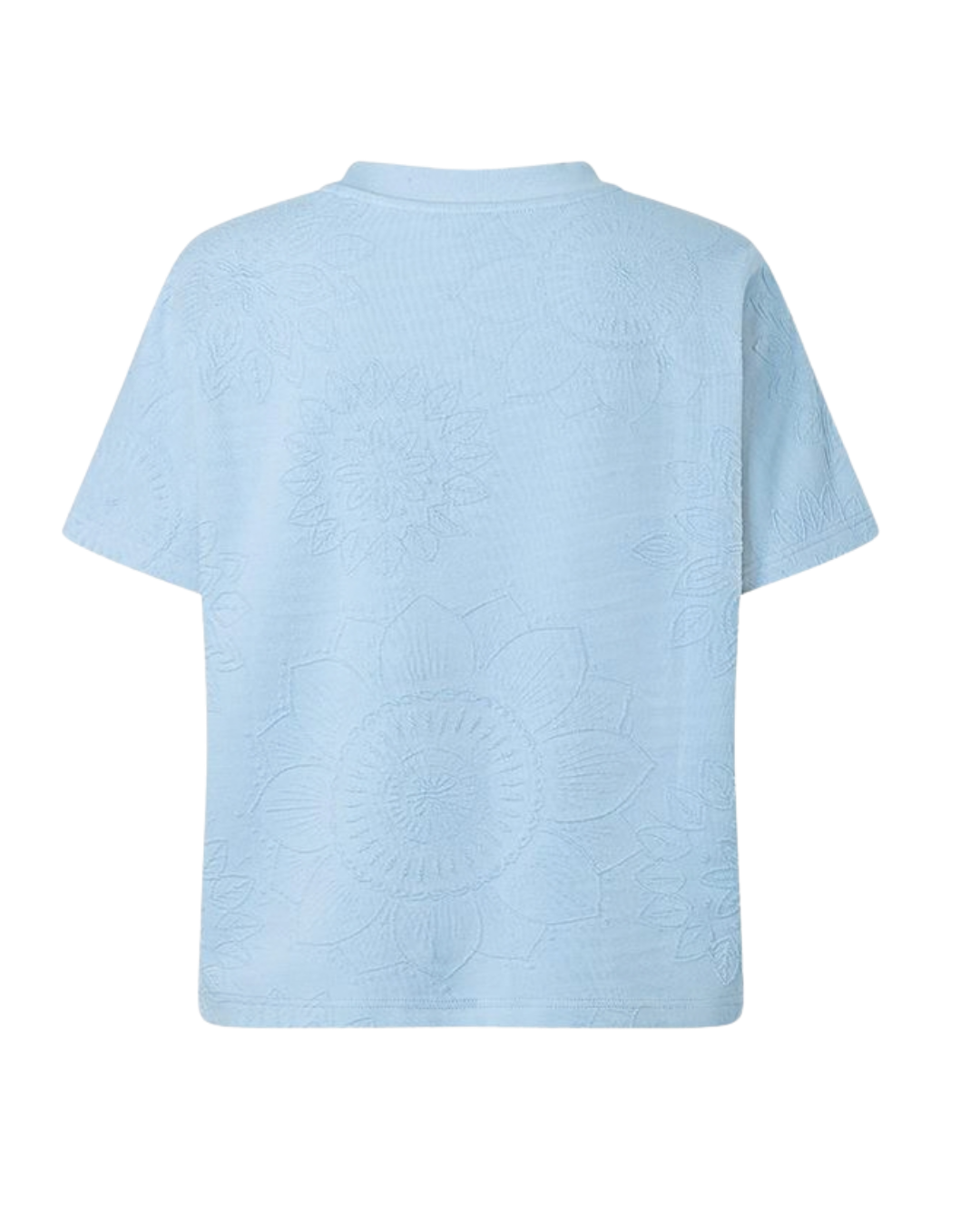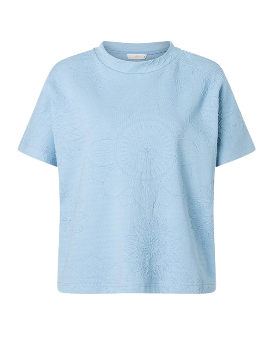 Leichte Farben, eine besondere Stoffstruktur und ein entspannter Schnitt machen dieses kurzärmelige Sweatshirt zu einem vielseitigen Begleiter für Alltag und Freizeit. Die ruhige Farbgebung in Eisblau wirkt klar und frisch und verleiht dem Look eine natürliche Leichtigkeit.
