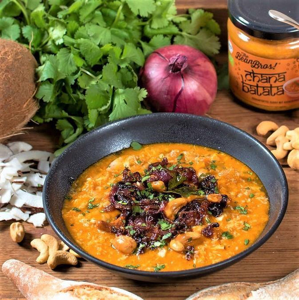 Bei den Inkas war die Süßkartoffel angeblich als „Batata“ bekannt und „Chana“ kommt aus Hindi und bedeutet Kichererbse. Die Kombination aus Kichererbsen und Süßkartoffel mit Tomaten und Kokosmilch legt die Basis für unser leckeres Daal. Kokosmilch macht manche Currys dick und schwer, aber das Chana Batata setzt mit frischer Tomate einen Gegenpol der Leichtigkeit durch ihr säuerliches Aroma. Kein Wunder also, dass dieses vegane Gericht bei unseren Stammkunden so beliebt ist.