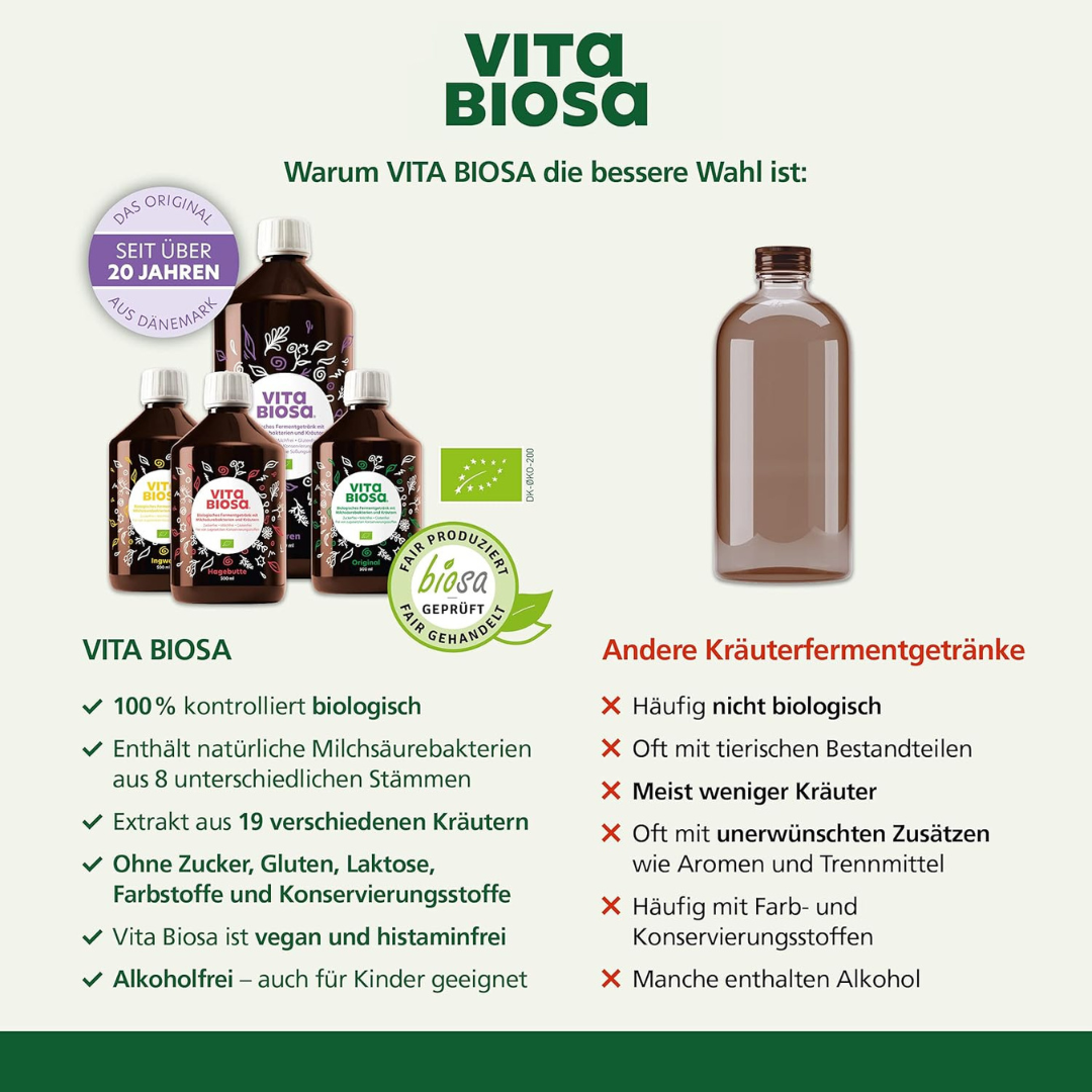 Hergestellt wird Vita Biosa Ingwer + Vitamin C von Biosa Vitalkonzepte in Dänemark, mit Zutaten aus EU- und Nicht-EU-Landwirtschaft. Das Unternehmen legt großen Wert auf biologischen Anbau, sorgfältige Verarbeitung und ein naturbelassenes Endprodukt.
